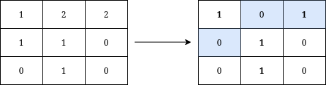 예시 [[1, 2, 2], [1, 1, 0], [0, 1, 0]]